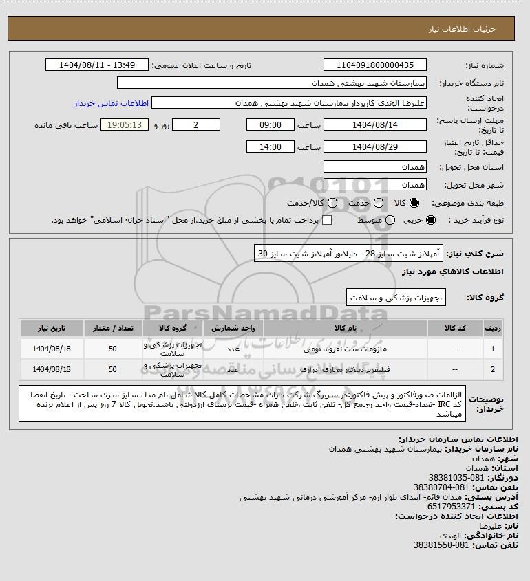 نام دستگاه خریدار:بیمارستان شهید بهشتی همدان