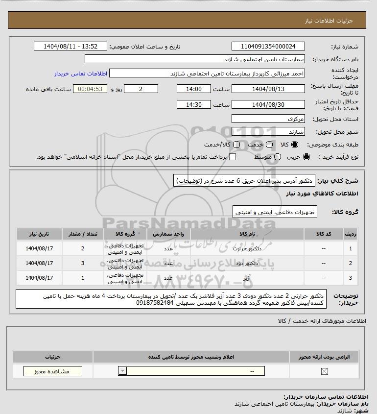 3 -- آژیر عدد تجهیزات دفاعی، ایمنی و امنیتی 1 1404/08/17
