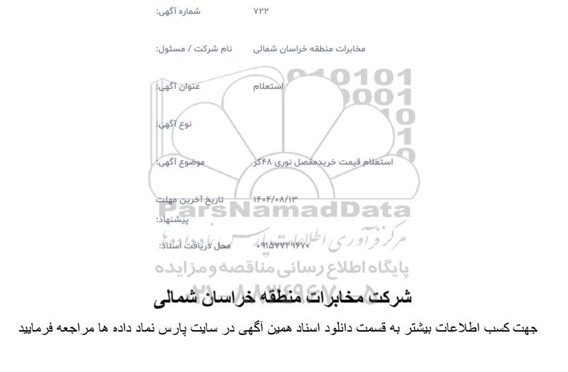 موضوع آگهی: استعلام قیمت خرید مفصل نوری 48 کر