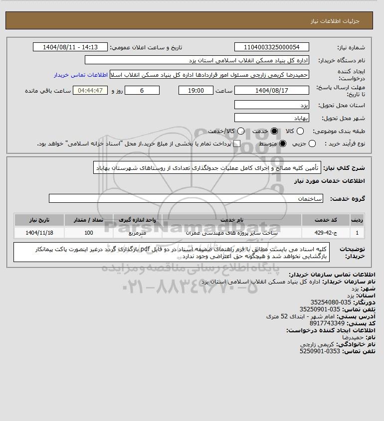 نام دستگاه خریدار:اداره کل بنیاد مسکن انقلاب اسلامی استان یزد