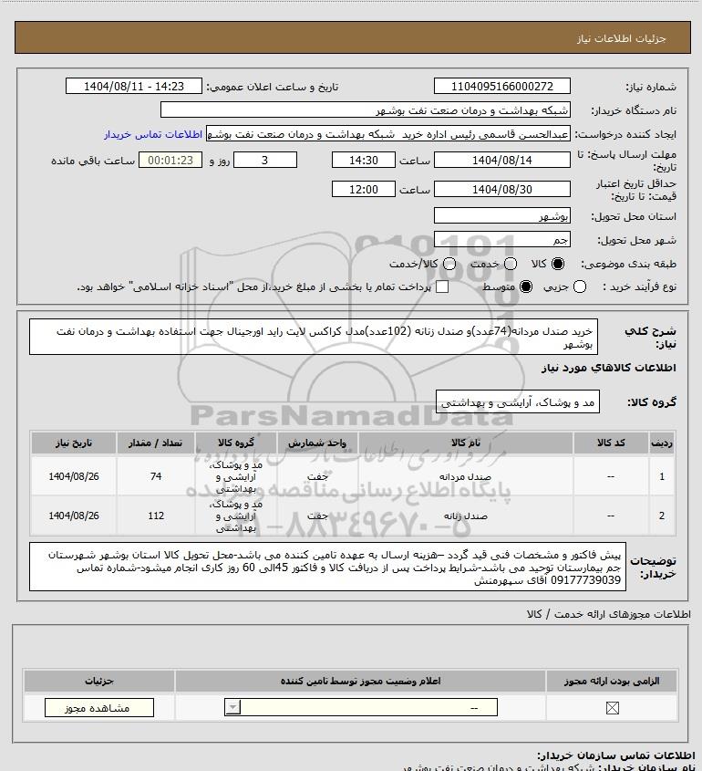 نام سازمان خریدار: شبکه بهداشت و درمان صنعت نفت بوشهر