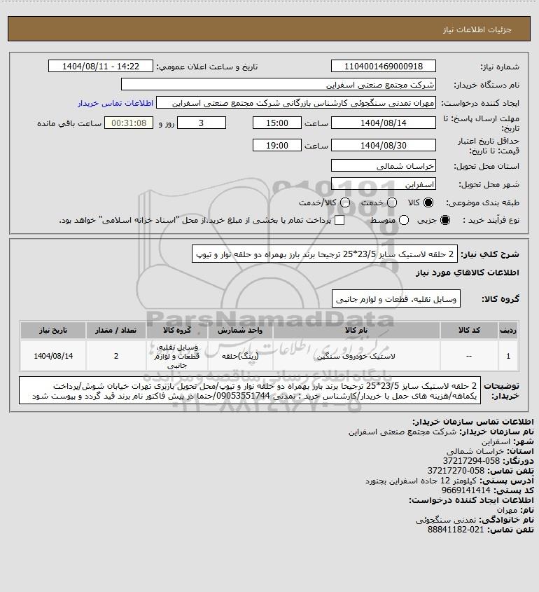 نام دستگاه خریدار:شرکت مجتمع صنعتی اسفراین