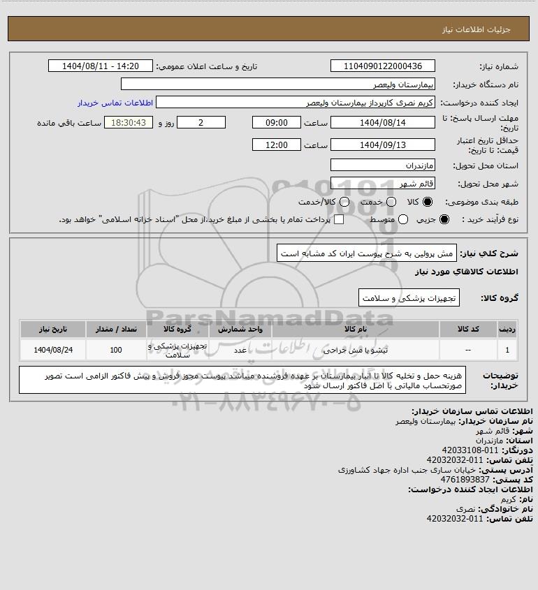 استعلام مش پرولین به شرح پیوست ایران کد مشابه است, استعلام مش پرولین به شرح پیوست ایران کد مشابه است