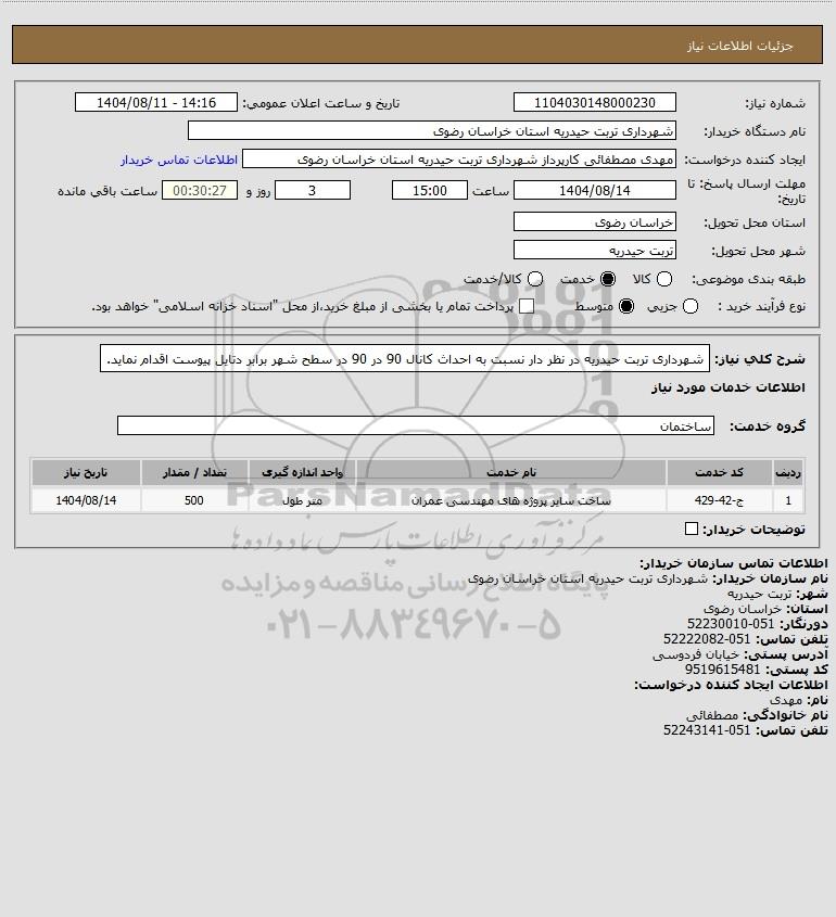 نام دستگاه خریدار:شهرداری تربت حیدریه استان خراسان رضوی