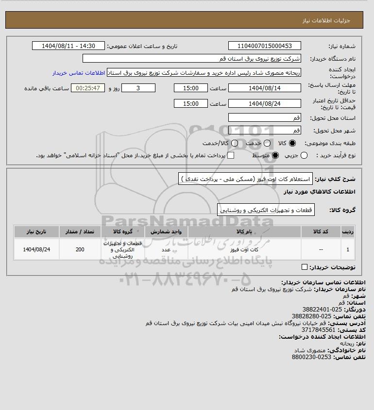 | 1 | -- | کات اوت فیوز | عدد | قطعات و تجهیزات الکتریکی و روشنایی | 200 | 1404/08/24 |