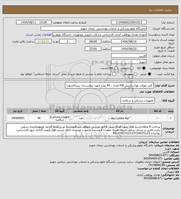شرح کلی نیاز: کتتر نموکت توراسنتزیس Fr8 تعداد : 40 عدد