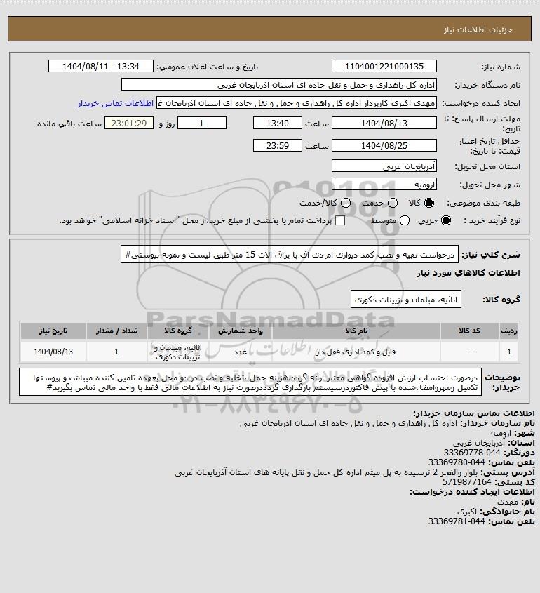 نام دستگاه خریدار:اداره کل راهداری و حمل و نقل جاده ای استان اذربایجان غربی