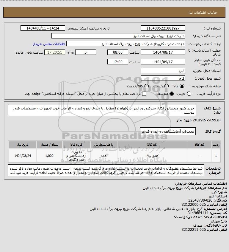 نام دستگاه خریدار:شرکت توزیع نیروی برق استان البرز