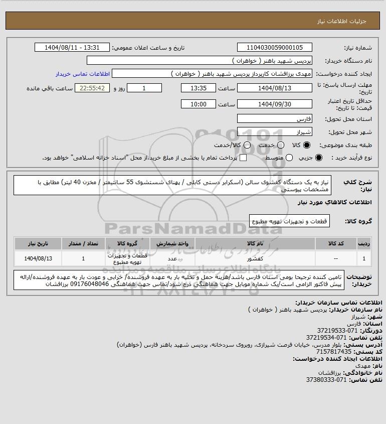 نام دستگاه خریدار:پردیس شهید باهنر ( خواهران )