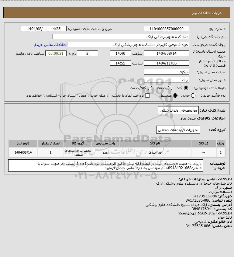 نام دستگاه خریدار:دانشکده علوم پزشکی اراک
