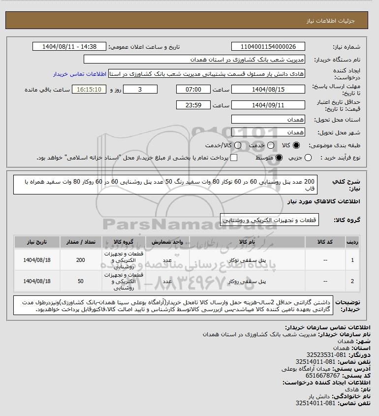 شرح کلی نیاز: 200 عدد پنل روشنایی 60 در 60 توکار 80 وات سفید رنگ