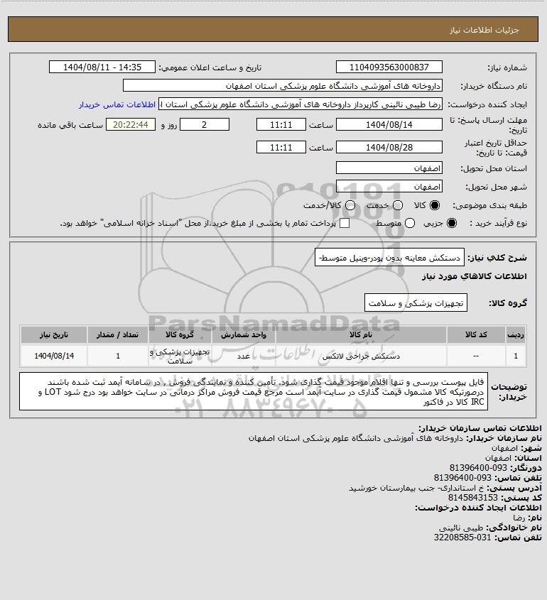 شرح کلی نیاز: دستکش معاینه بدون پودر-وینیل متوسط-