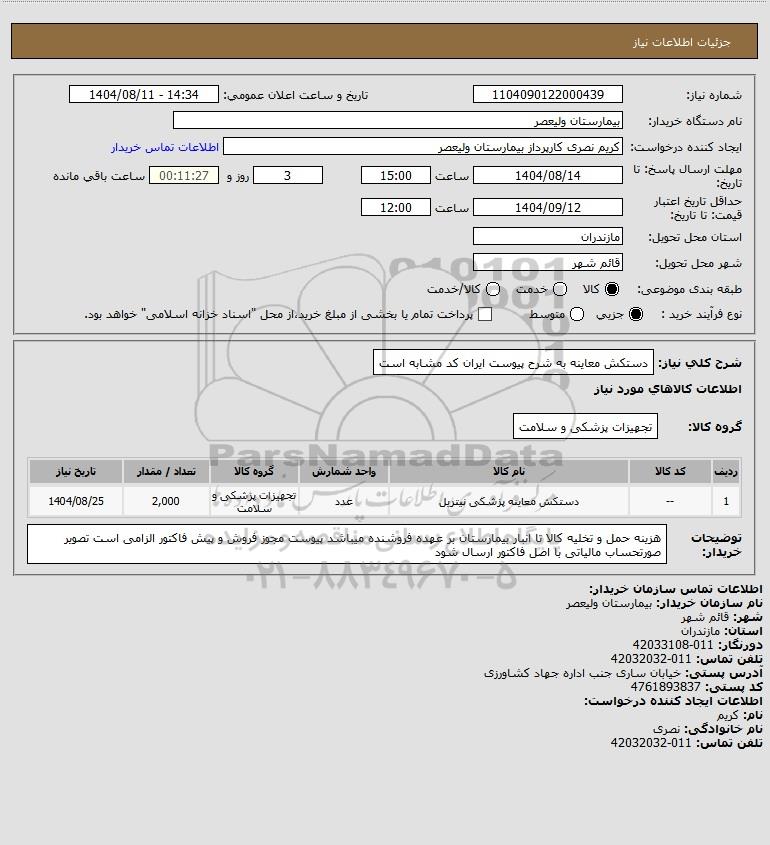 نام دستگاه خریدار:بیمارستان ولیعصر