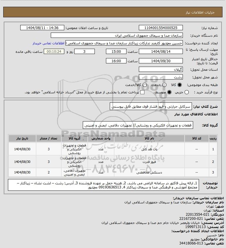 شرح کلی نیاز: سرکابل حرارتی و فیوز فشار قوی مطابق فایل پیوستی