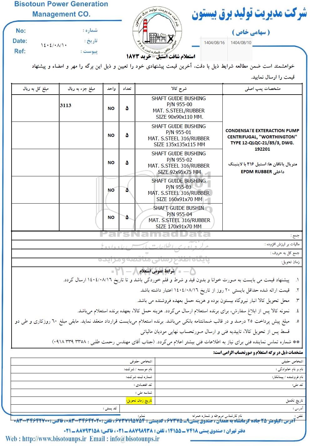 2- قیمت ارائه شده حداقل بایستی 20 روز از تاریخ 1404.8.16 اعتبار داشته باشد.