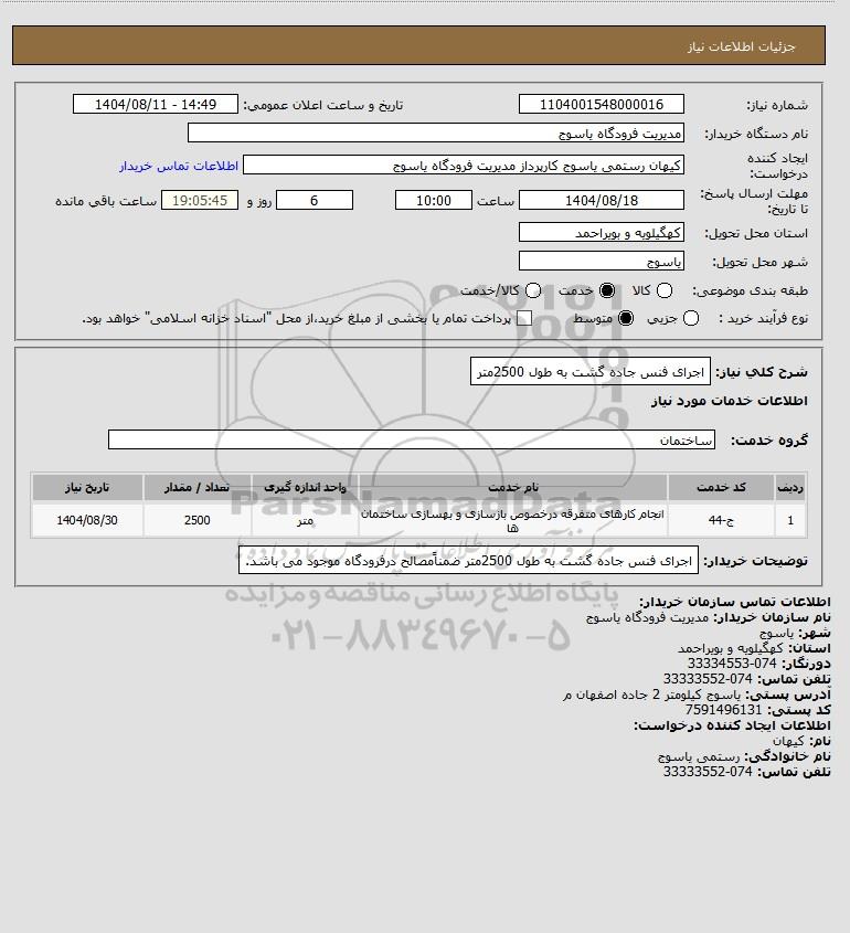 شرح کلی نیاز: اجرای فنس جاده گشت به طول 2500متر