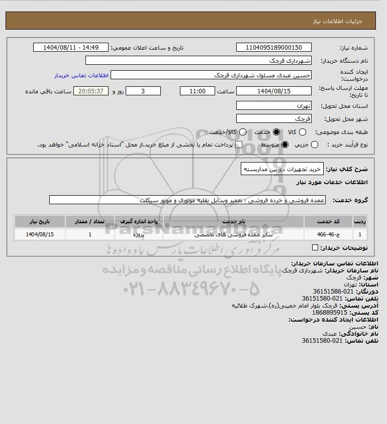 شرح کلی نیاز: خرید تجهیزات دوربین مداربسته