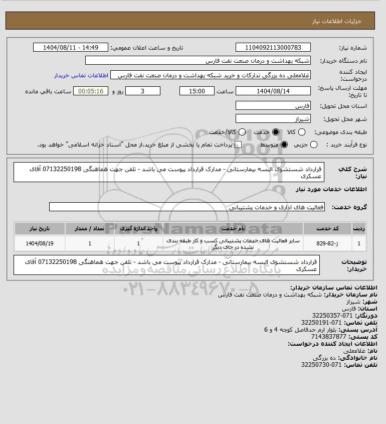 نام دستگاه خریدار:شبکه بهداشت و درمان صنعت نفت فارس