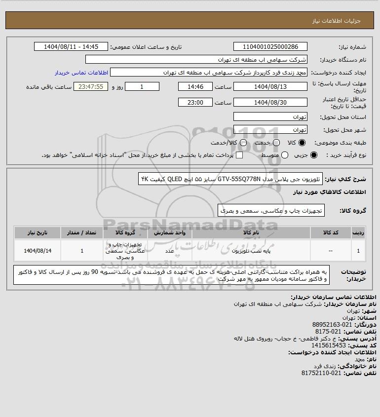 نام دستگاه خریدار:شرکت سهامی اب منطقه ای تهران