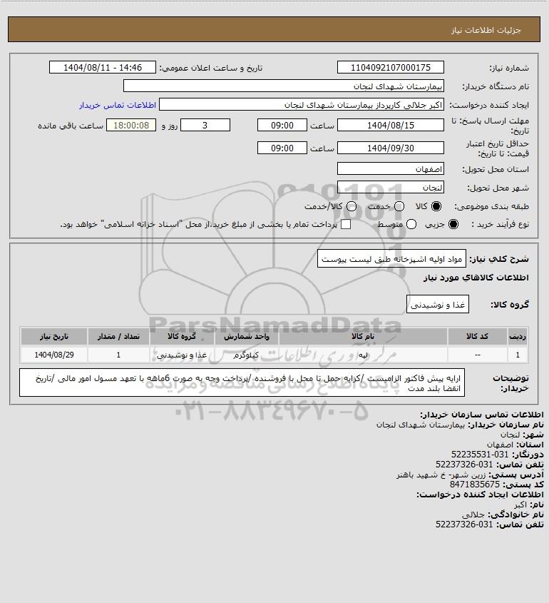 شرح کلی نیاز: مواد اولیه اشپزخانه طبق لیست پیوست