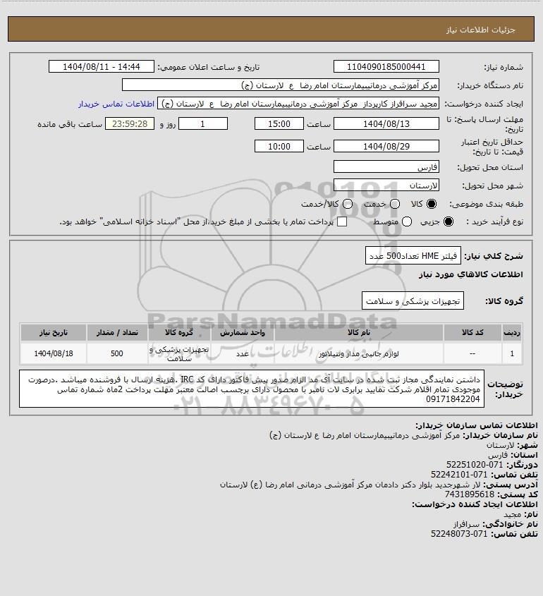 نام دستگاه خریدار:مرکز آموزشی درمانیبیمارستان امام رضا ع لارستان (ج)