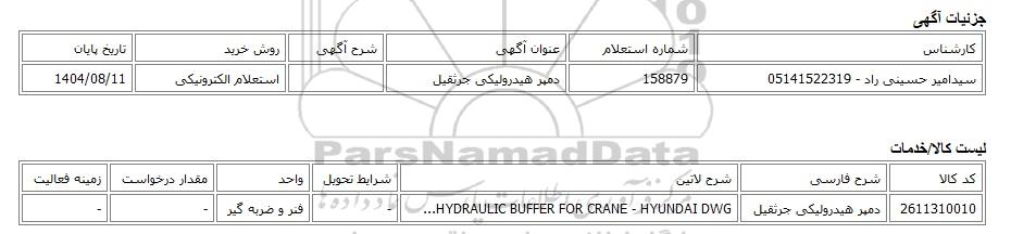سیدامیر حسینی راد - 05141522319158879دمپر هیدرولیکی جرثقیلاستعلام الکترونیکی1404/08/11