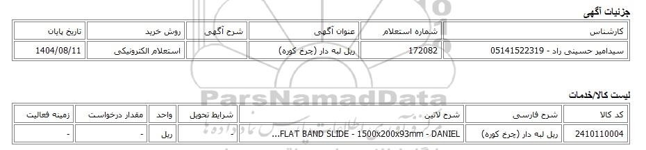 سیدامیر حسینی راد - 05141522319172082ریل لبه دار (چرخ کوره)استعلام الکترونیکی1404/08/11