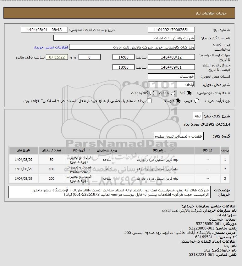 نام دستگاه خریدار:شرکت پالایش نفت ابادان