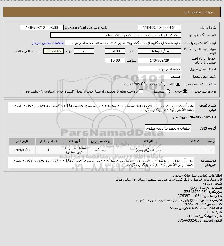نام دستگاه خریدار:بانک کشاورزی مدیریت شعب استان خراسان رضوی