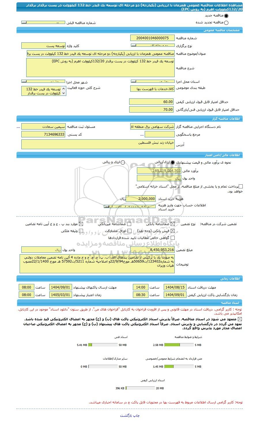 | مبلغ تضمین | 8,450,953,216 | واحد پول | ریال |