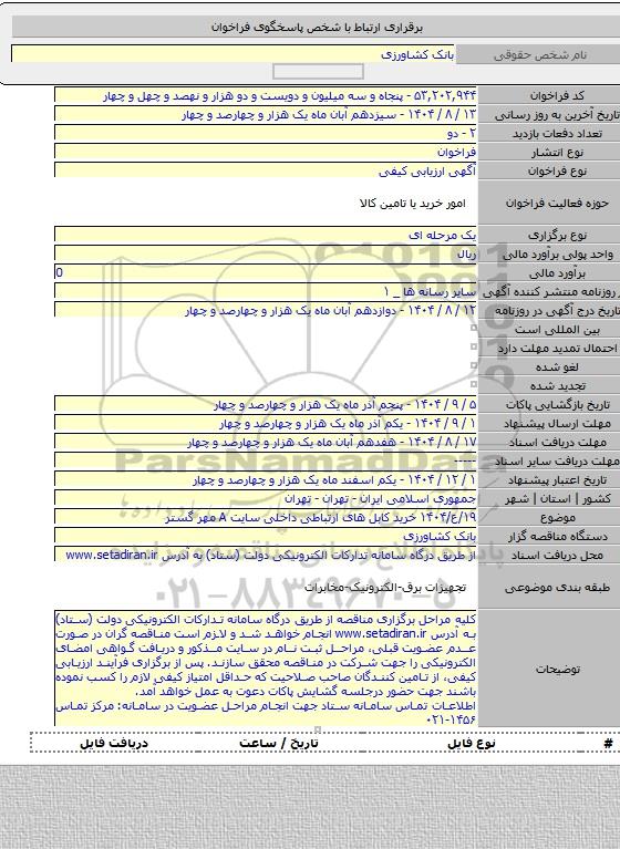 ۱۹/ع/۱۴۰۴ خرید کابل های ارتباطی داخلی سایت A مهر گستر