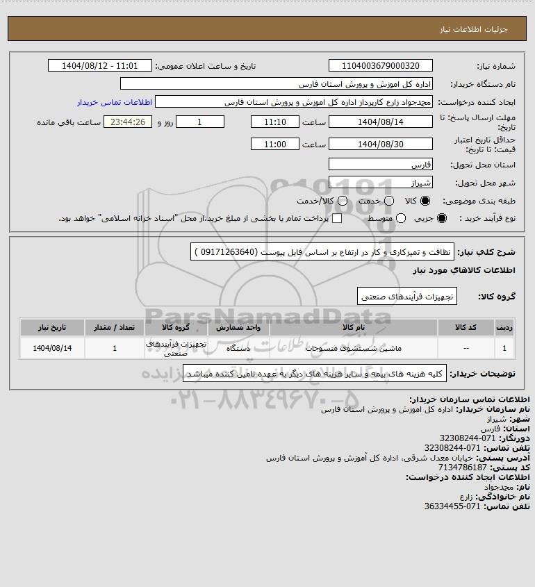 نام دستگاه خریدار:اداره کل اموزش و پرورش استان فارس