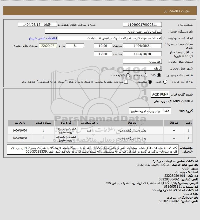 نام سازمان خریدار: شرکت پالایش نفت ابادان