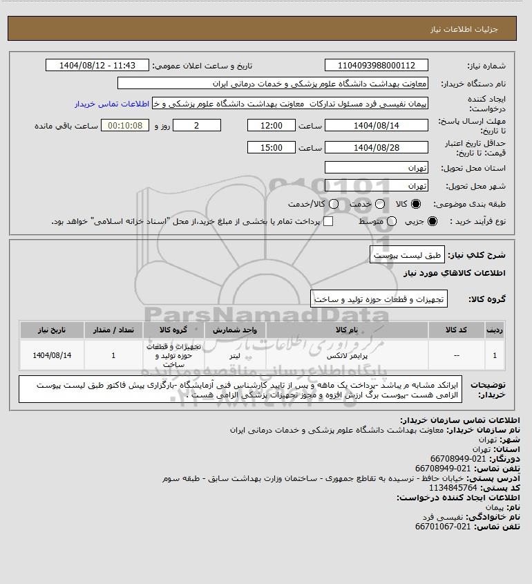 نام دستگاه خریدار:معاونت بهداشت دانشگاه علوم پزشکی و خدمات درمانی ایران