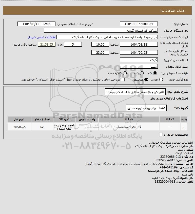 نام دستگاه خریدار:شرکت گاز استان گیلان