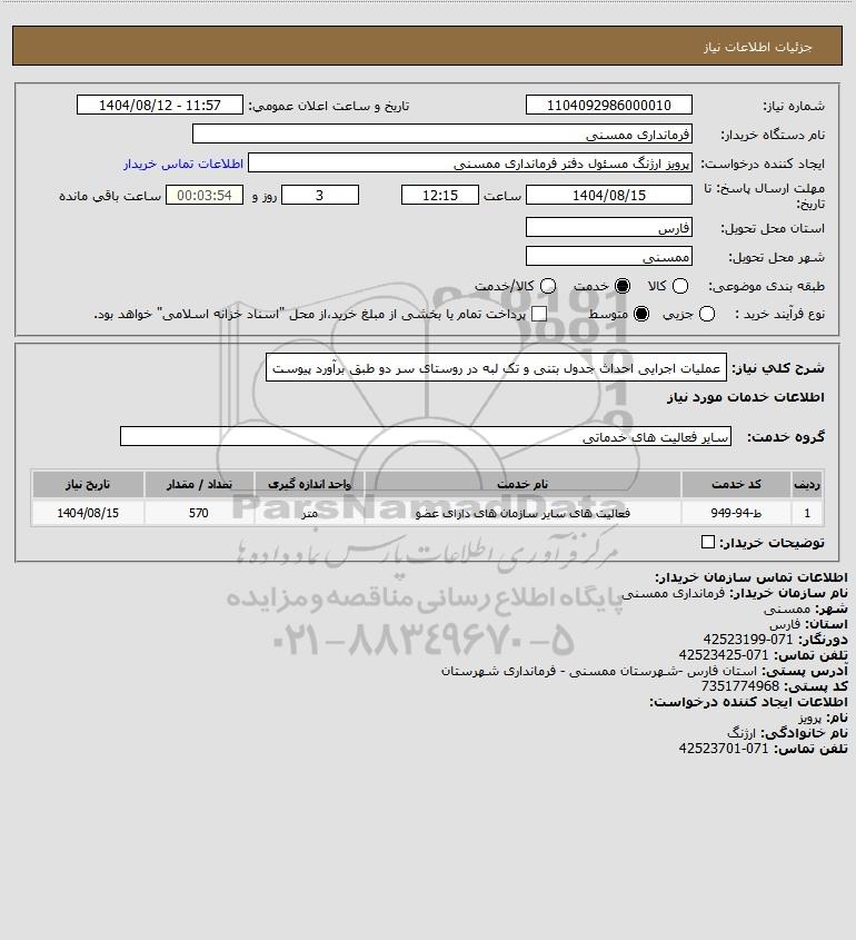 شرح کلی نیاز: عملیات اجرایی احداث جدول بتنی و تک لبه در روستای سر دو طبق برآورد پیوست