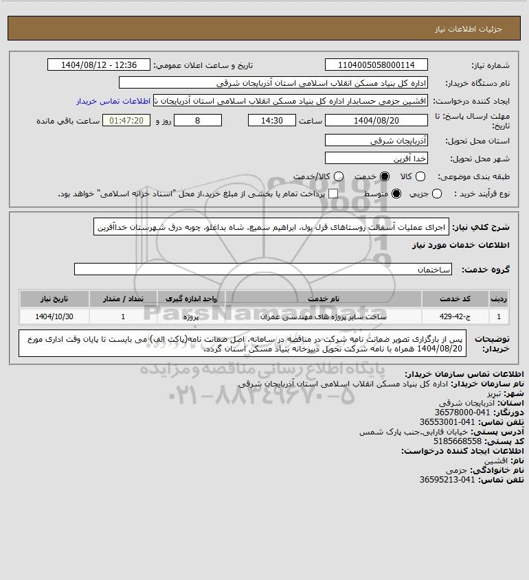 نام دستگاه خریدار:اداره کل بنیاد مسکن انقلاب اسلامی استان آذربایجان شرقی
