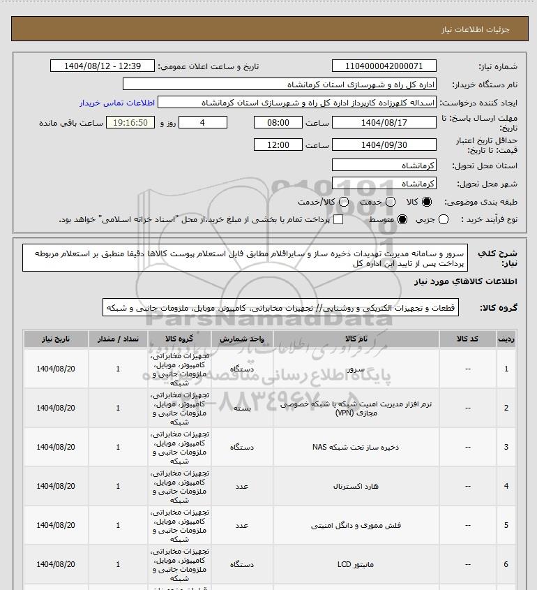 نام دستگاه خریدار:اداره کل راه و شهرسازی استان کرمانشاه
