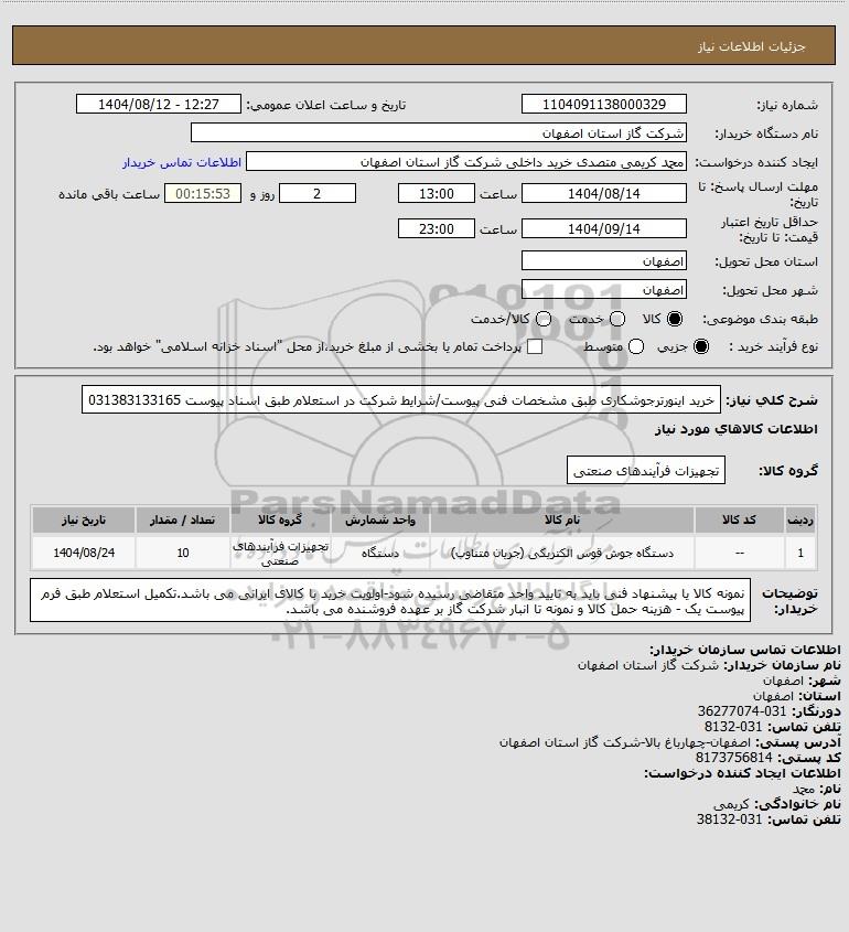 نام دستگاه خریدار:شرکت گاز استان اصفهان