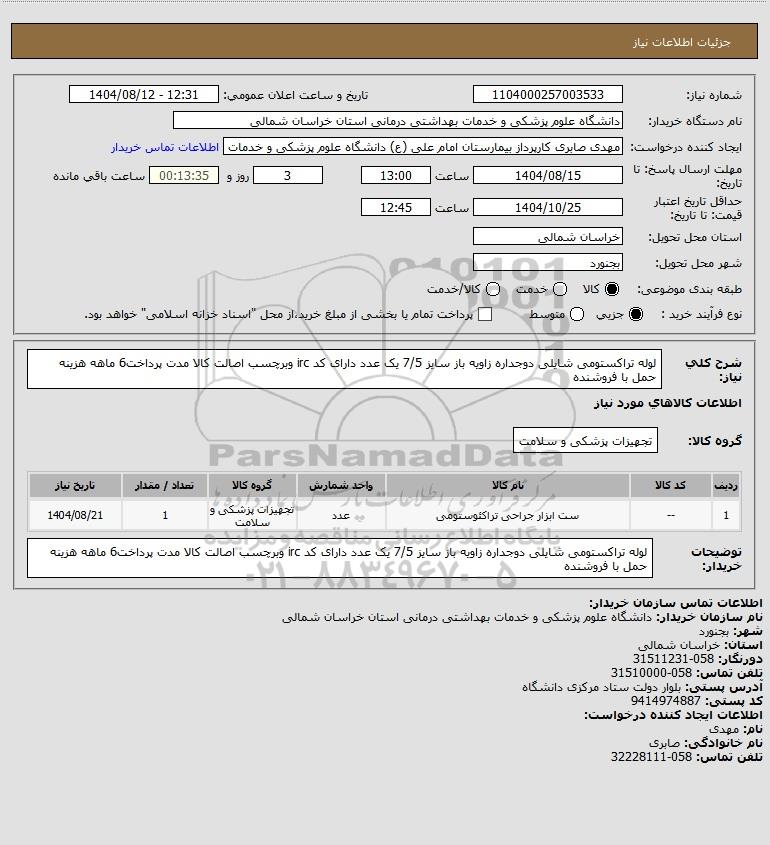 نام دستگاه خریدار:دانشگاه علوم پزشکی و خدمات بهداشتی درمانی استان خراسان شمالی