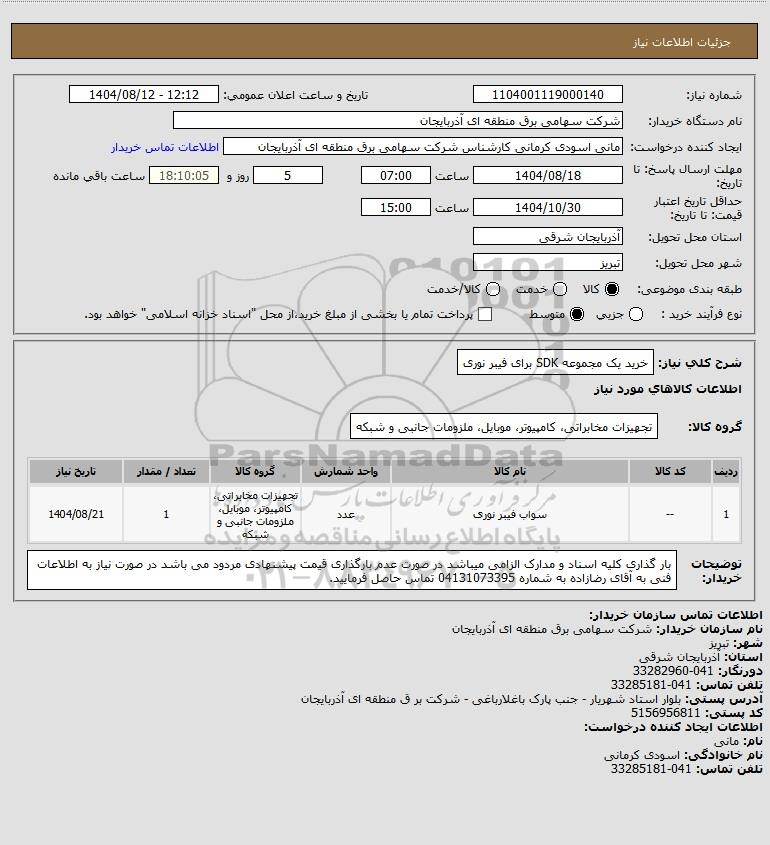 شرح کلی نیاز: خرید یک مجموعه SDK برای فیبر نوری
