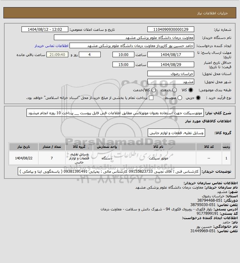 نام دستگاه خریدار:معاونت درمان دانشگاه علوم پزشکی مشهد