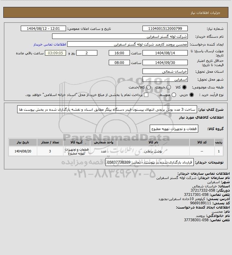 نام دستگاه خریدار:شرکت لوله گستر اسفراین