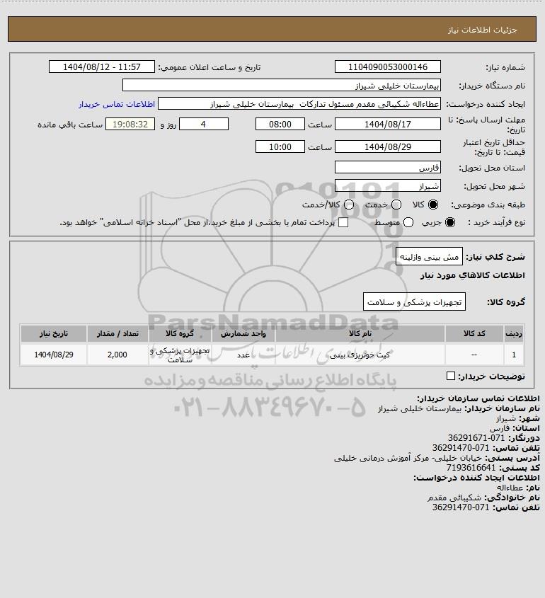 نام دستگاه خریدار:بیمارستان خلیلی شیراز