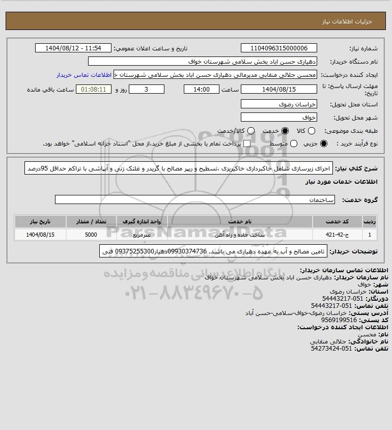نام دستگاه خریدار:دهیاری حسن اباد بخش سلامی شهرستان خواف