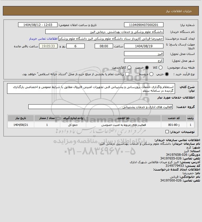 نام دستگاه خریدار:دانشگاه علوم پزشکی و خدمات بهداشتی درمانی البرز