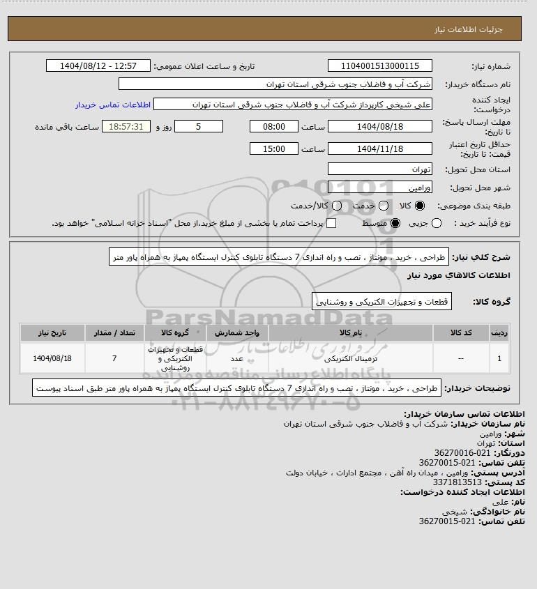 استعلام طراحی خرید مونتاژ نصب و راه اندازی 7 دستگاه تابلوی کنترل ایستگاه پمپاژ به همراه پاور متر, استعلام طراحی ، خرید ، مونتاژ ، نصب و راه اندازی 7 دستگاه تابلوی کنترل ایستگاه پمپاژ به همراه پاور متر