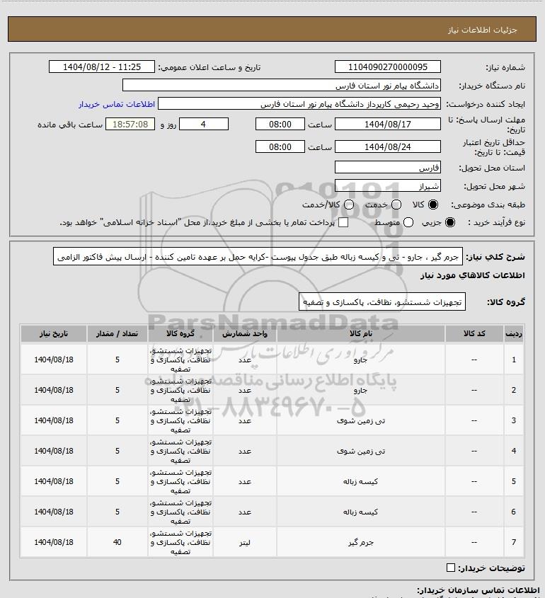 نام دستگاه خریدار:دانشگاه پیام نور استان فارس