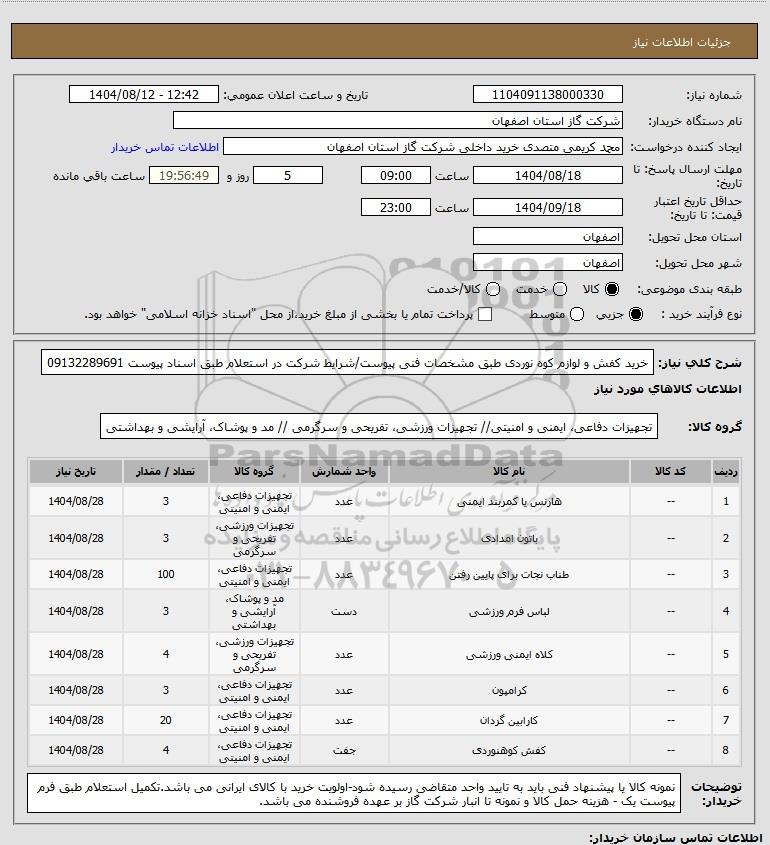 نام دستگاه خریدار:شرکت گاز استان اصفهان