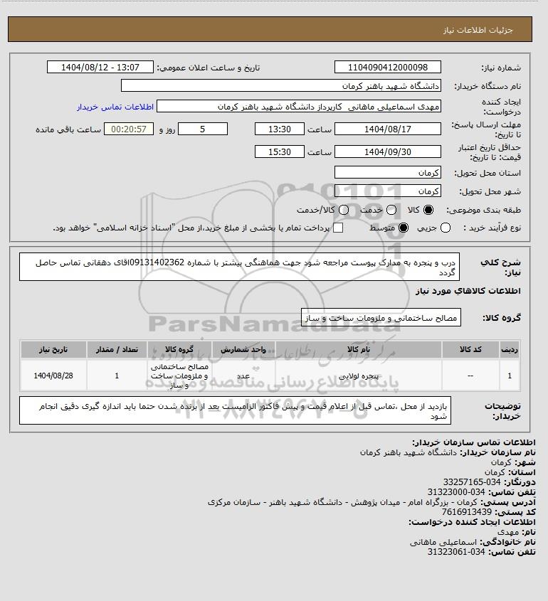 نام دستگاه خریدار:دانشگاه شهید باهنر کرمان